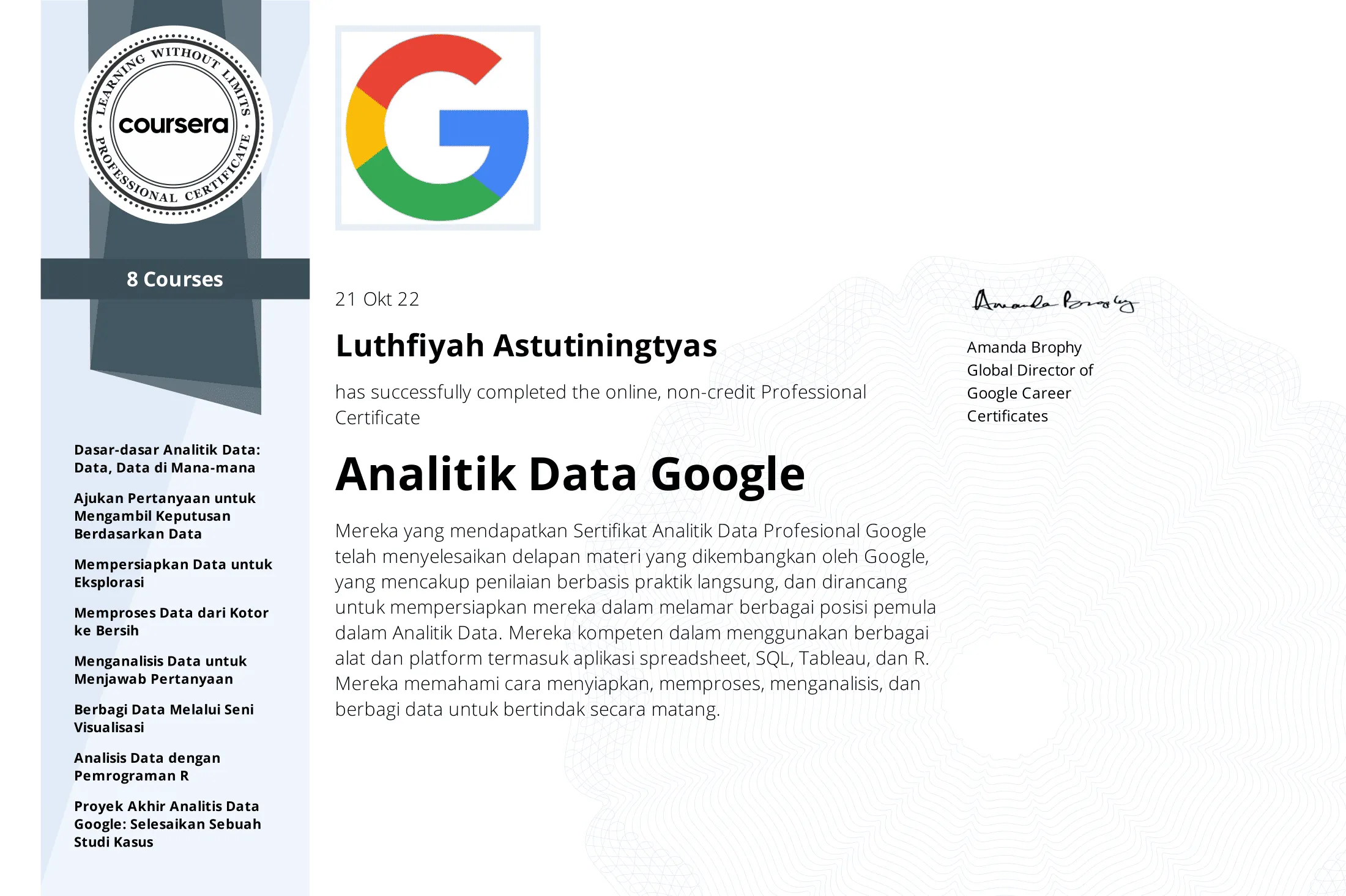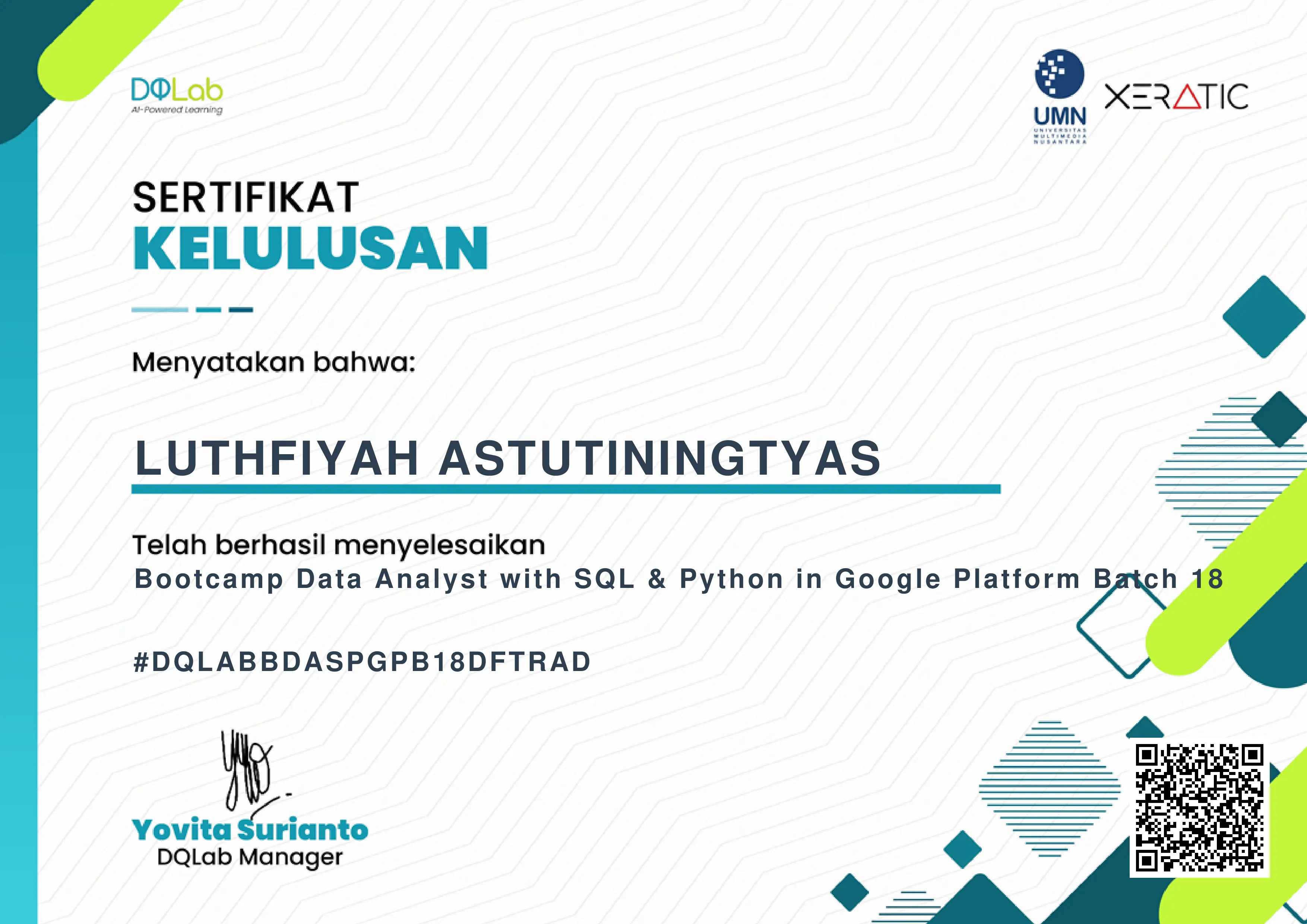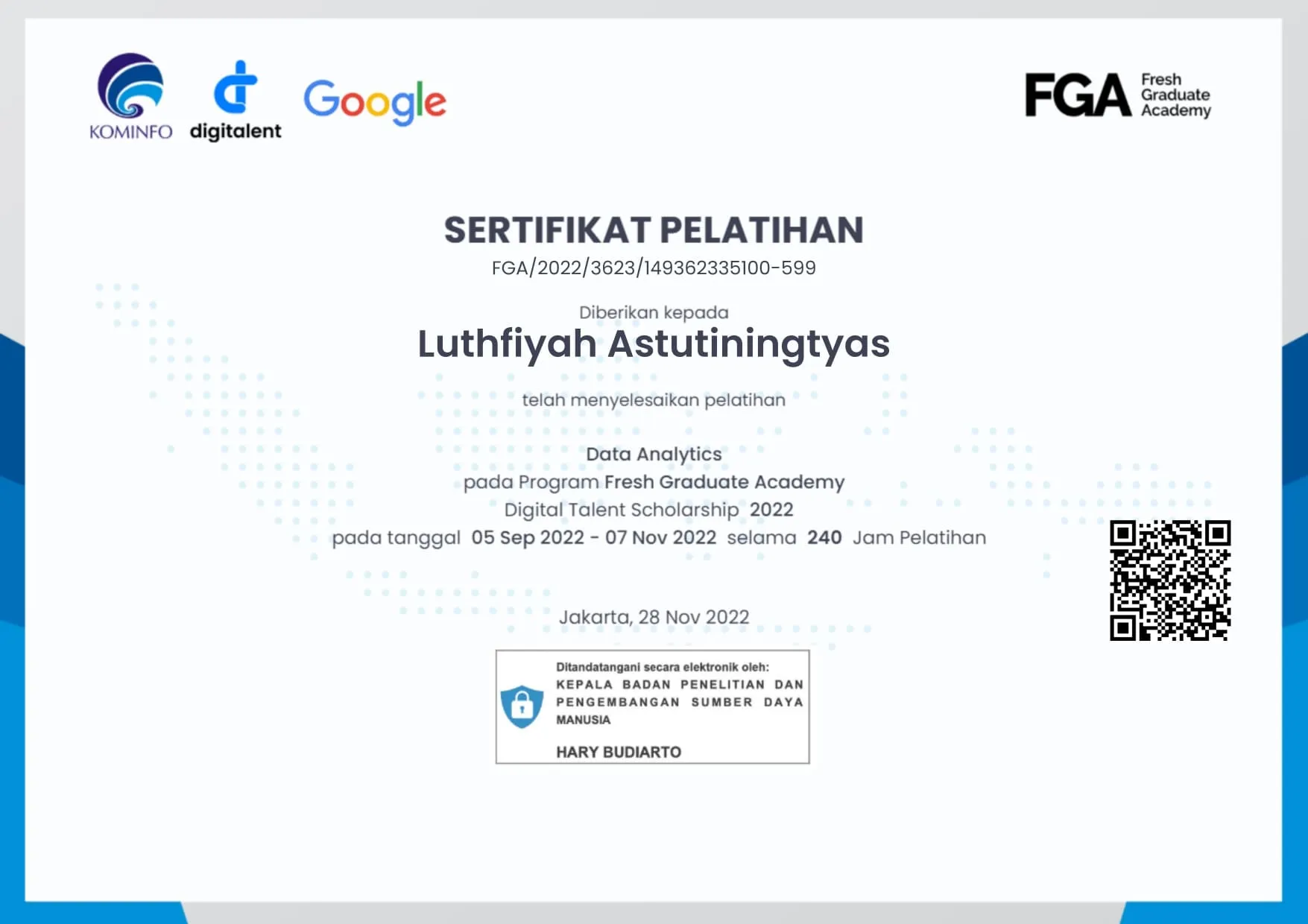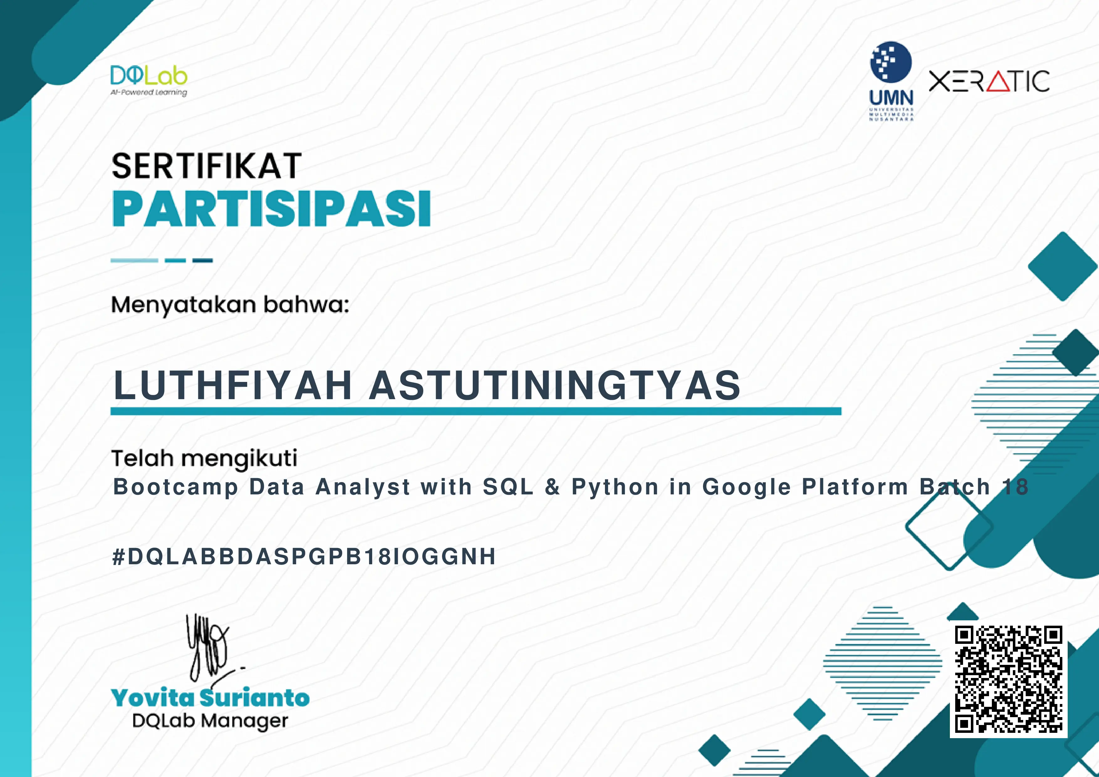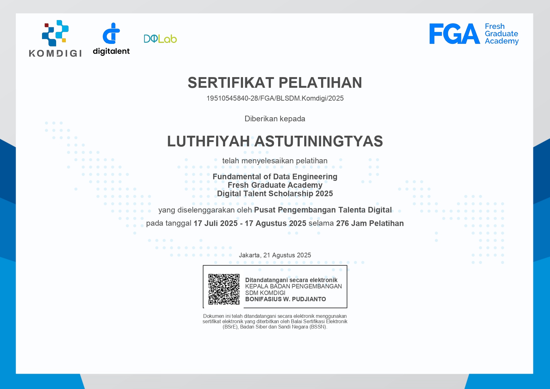 I am a Bachelor of Mathematics graduate from Universitas Negeri Semarang with a strong foundation in data analysis, processing, and visualization. Proficient in SQL, Python, Tableau, and Excel, I have hands-on experience in managing and analyzing complex datasets, creating interactive dashboards, and delivering data-driven solutions that support informed decision-making. My passion lies in uncovering insights through data and leveraging it to solve complex problems, while continuously exploring new technologies and enhancing my skills. With a commitment to innovation and adaptability, I am eager to contribute as a Data Analyst, Data Scientist, or Data Engineer to impactful projects across various industries.